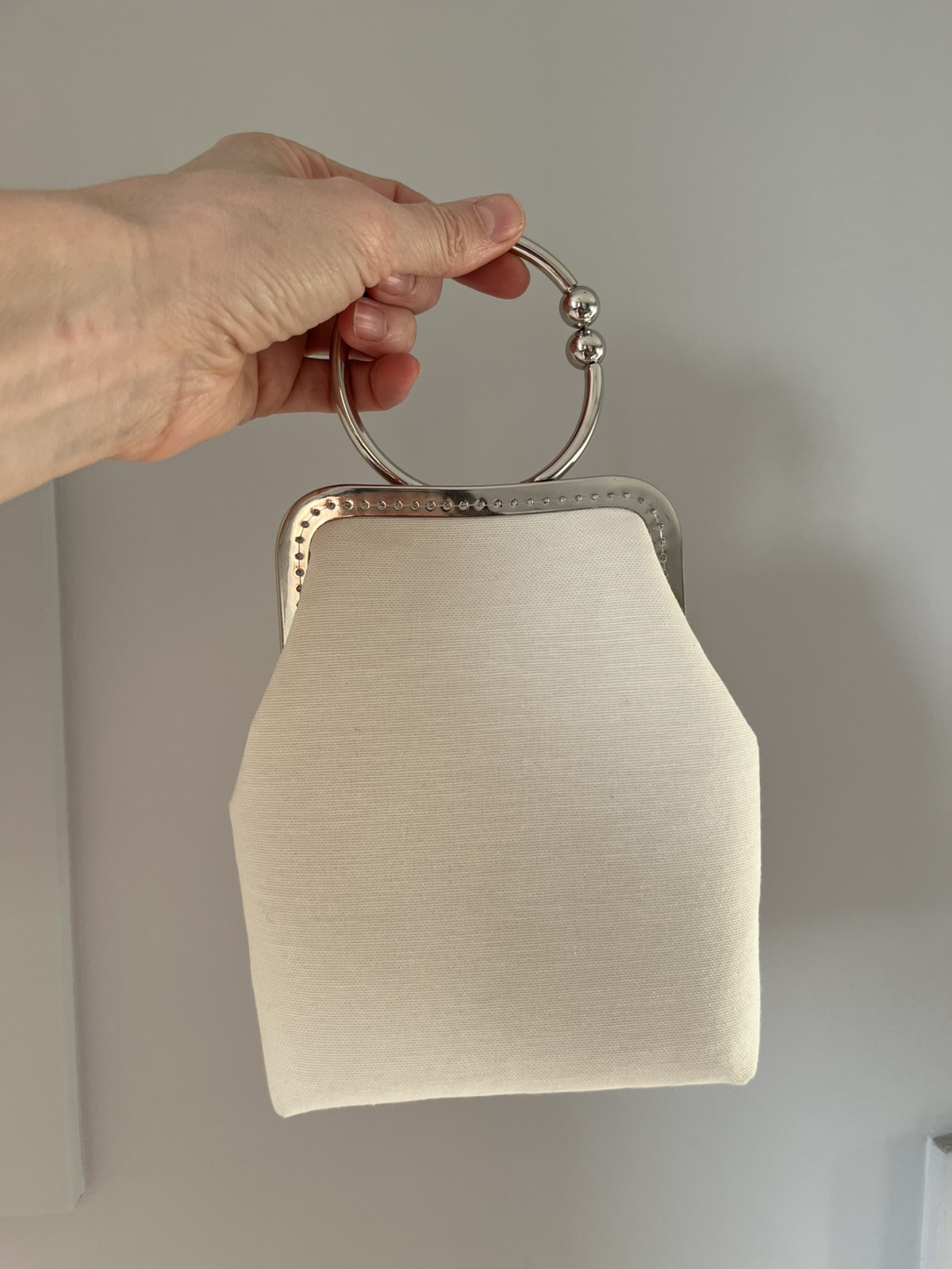- Ручка: кругла металева ручка-кільце з декоративними кульками, зручно носити на зап’ясті чи в руці. Ланцюжок додається.