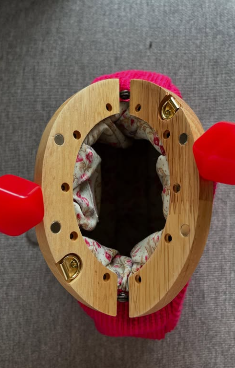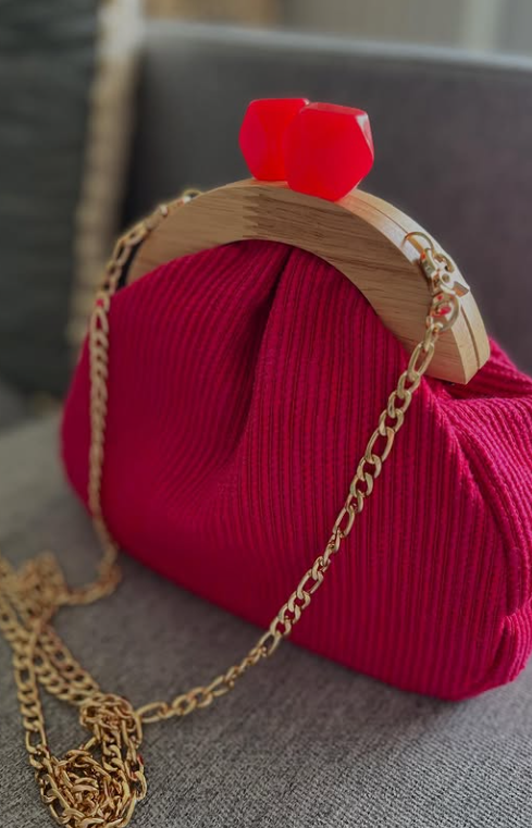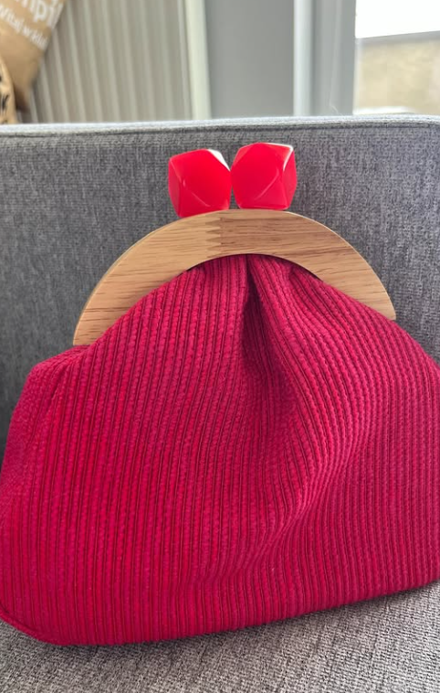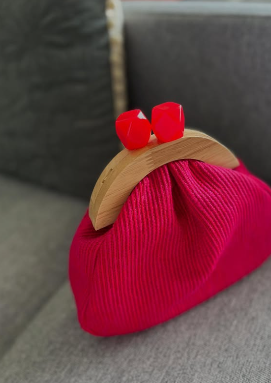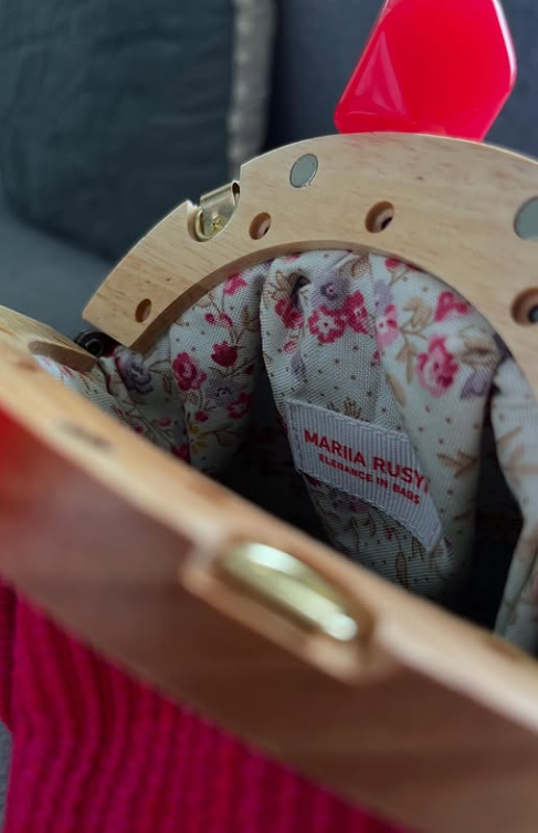 Рамка: дерев’яна дугоподібна рамка у світло-коричневому відтінку, що додає сумочці природного акценту.