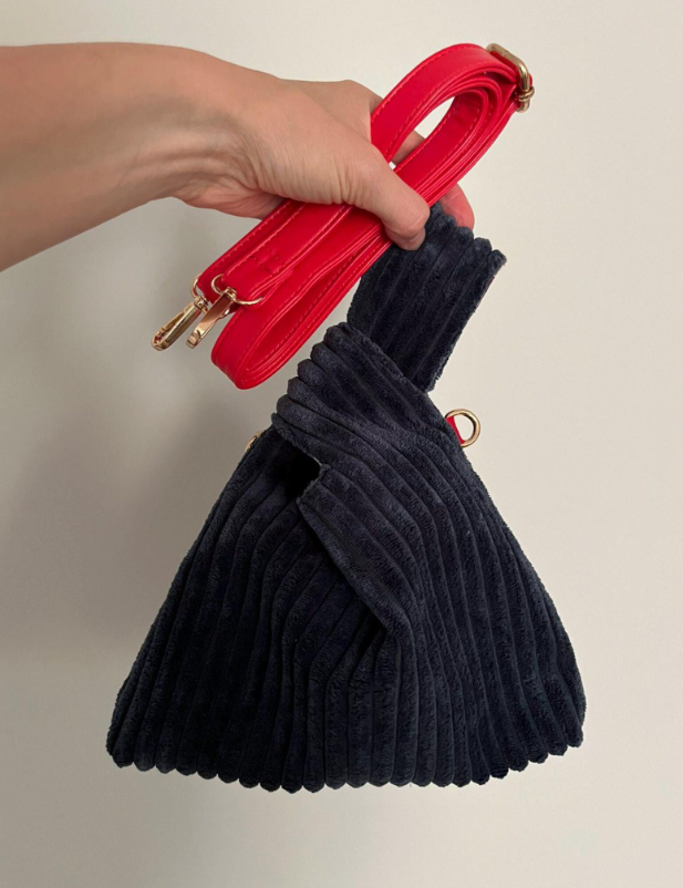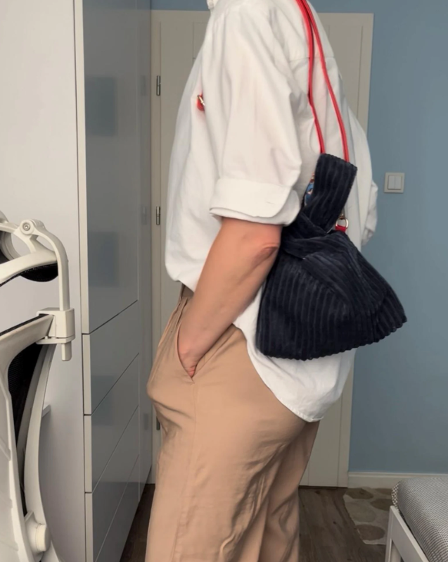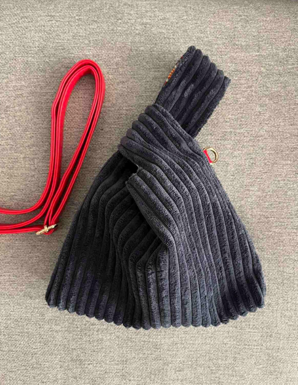 Ця сумочка у стилі японського вузлика має сучасний і водночас затишний вигляд:
