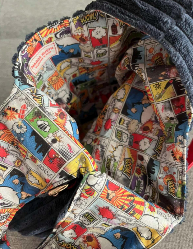 Матеріал: м’яка фактурна тканина з оксамитовими вертикальними смужками у темно-синьому кольорі, що додає об’ємності та тактильної приємності.